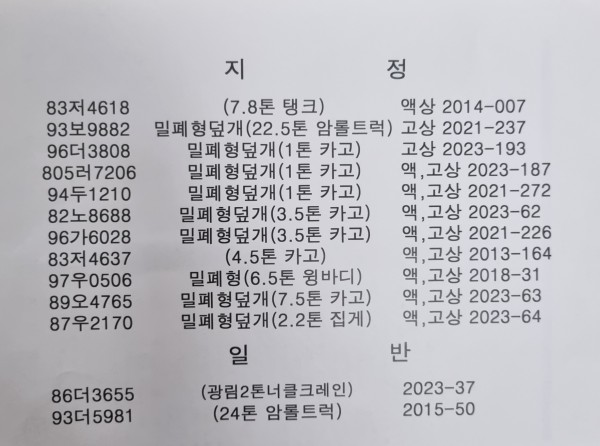 가달이엔티 차량변경 내용입니다.
